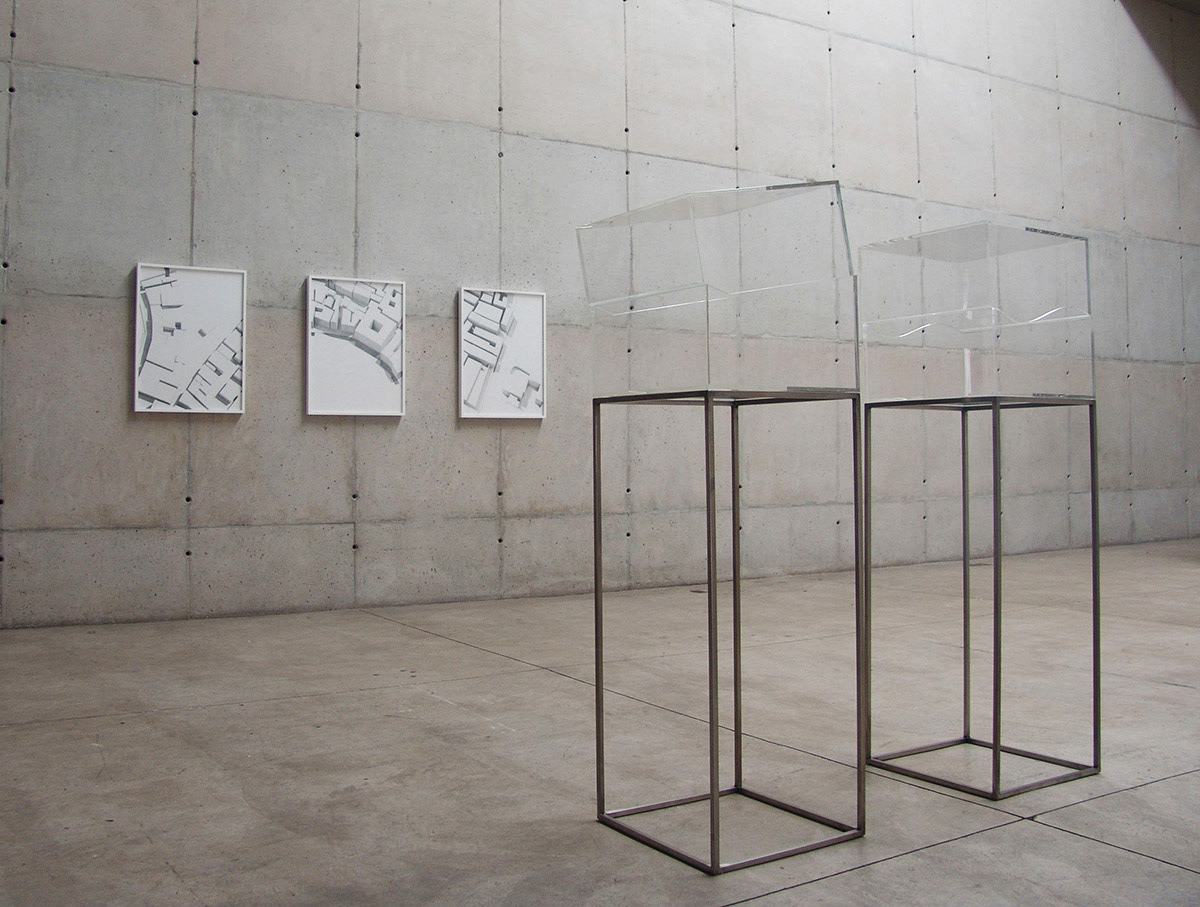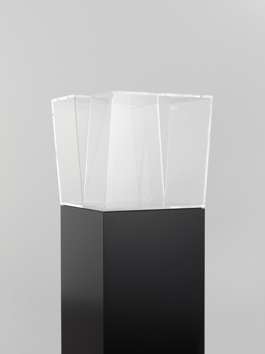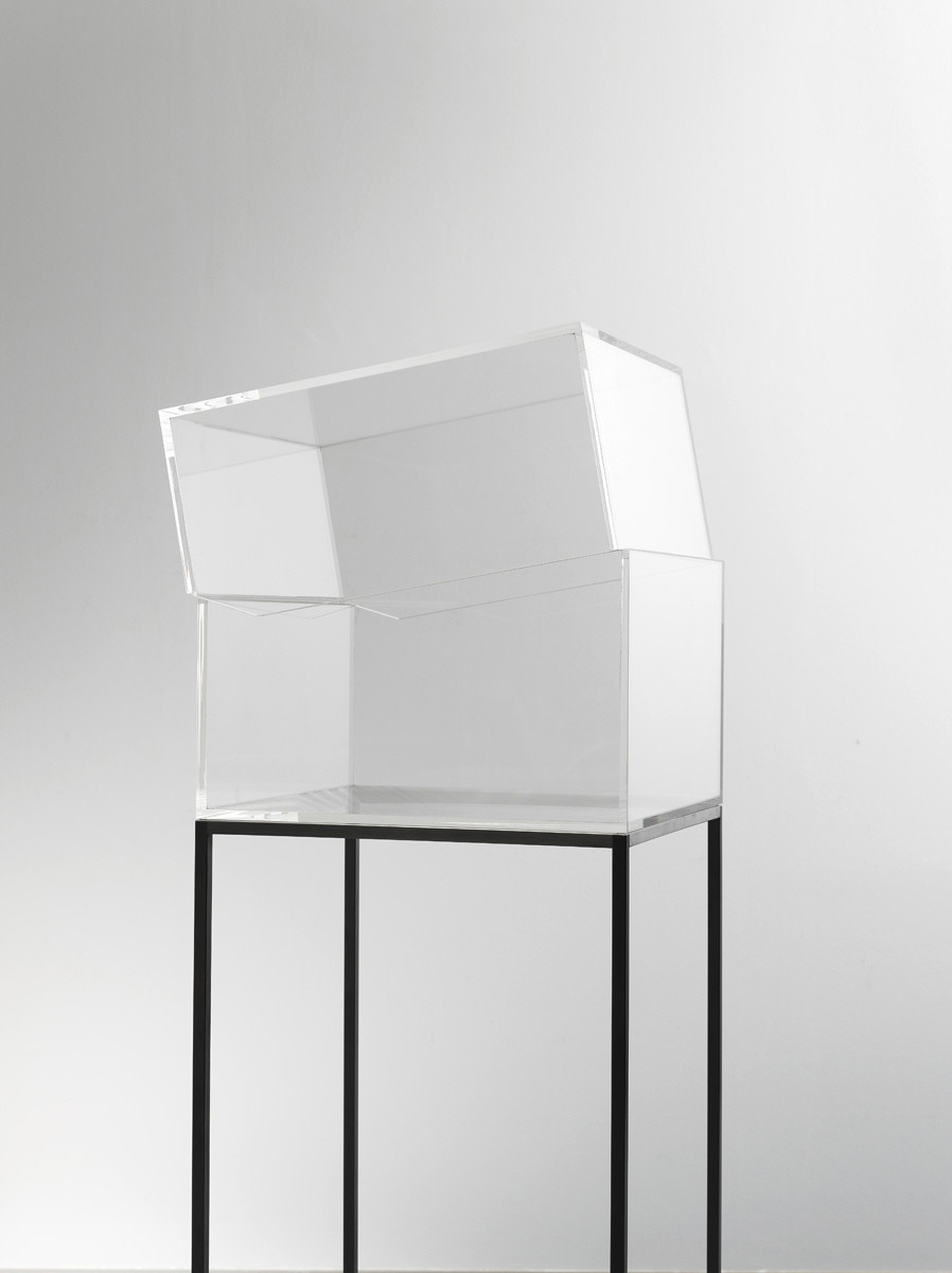 Zoning 03, 2010, plexiglass, stainless steel, 53 x 48 x 163 cm, ed. 1/3, Zoning 04, 2011, plexiglass, wood, paint, 53 x 48 x 158 cm, ed. 1/3, Zoning 02, 2009, plexiglass, wood, paint, 158 x 48 x 54 cm, ed. 1/3, exhibition view: Perception, Galeria Leme, Sao Paulo/BR (Photos: Jörg von Bruchhausen, Bernd Borchardt and others)