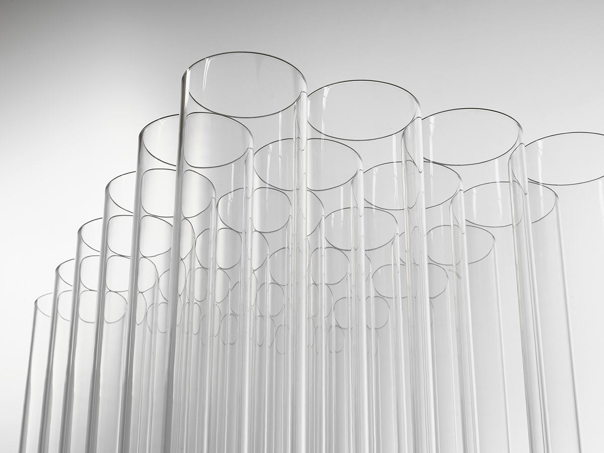 Exhibition view: Blickwechsel, PEAC Paul Ege Art Collection, 2017 (with Reiner Ruthenbeck) / work in exhibition: Elude, 2012, 24 plexiglass tubes, stainless steel cart, 269 x 97 x 67 cm (Photos: Bernhard Strauss and Bernd Borchardt)